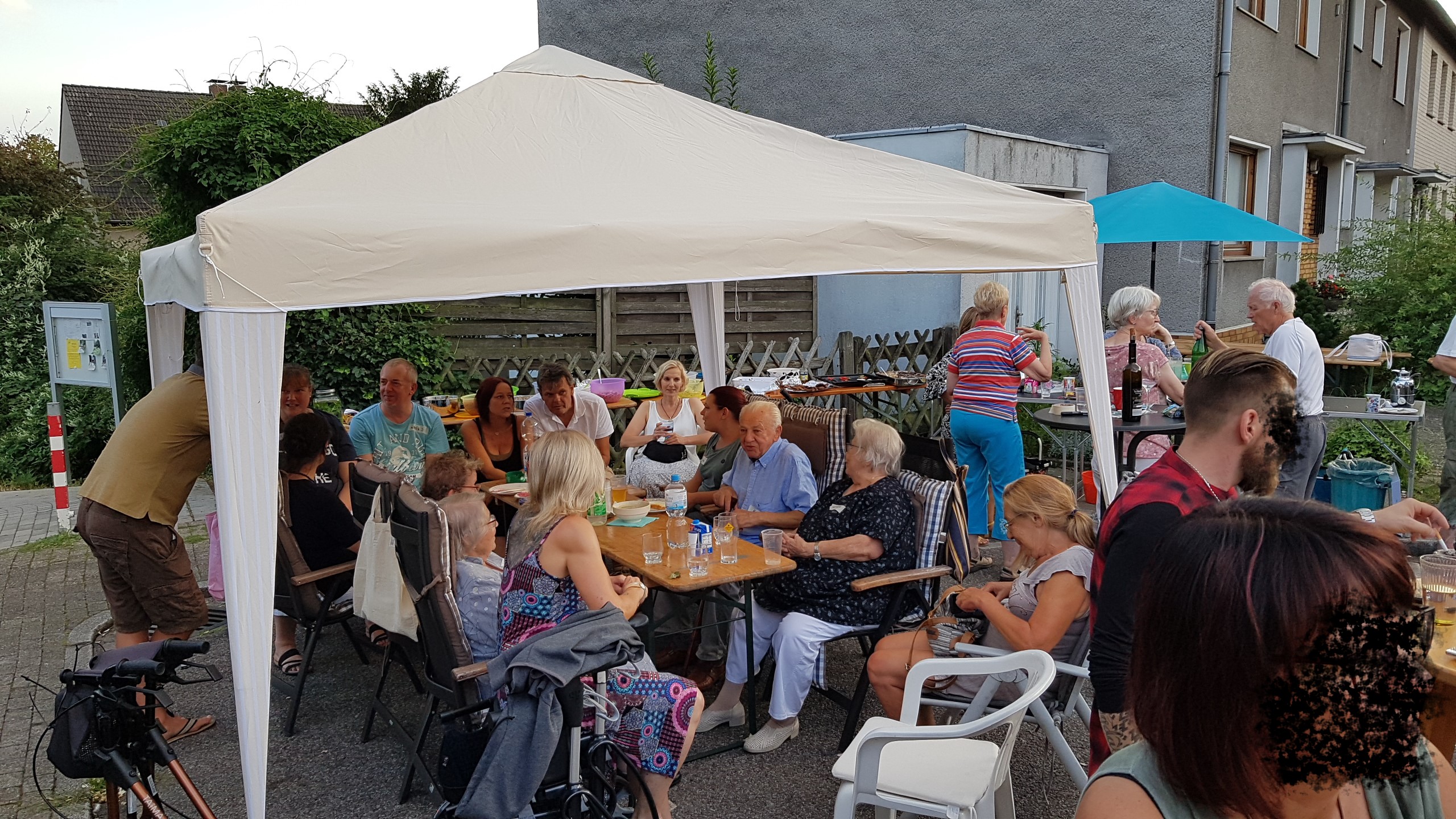 An einem der letzten schönen, warmen Sommertage konnten rund 60 Besucher den Tag gemeinsam genießen. Mitgebrachte Speisen wurden zu einem Buffet zusammengestellt, aber auch die vom Nachbarschaftsverein angebotenen Grillwürstchen und Getränke fanden reichlich Abnehmer.