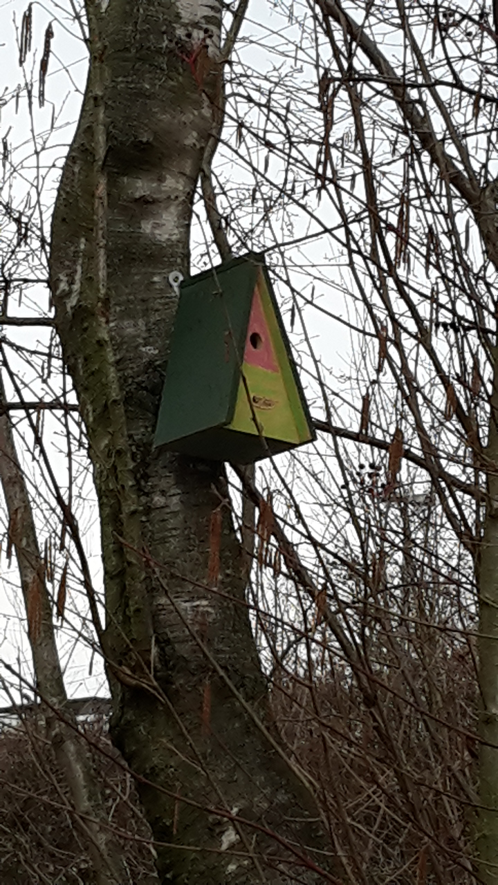 Andere wiederum kletterten auf die Leiter, um Nisthilfen für Vögel und Fledermäuse im Wäldchen anzubringen.